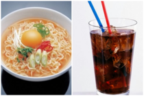 라면은 화학적으로 칼슘과 결합을 잘하는 성질이 있어 칼슘 부족을 일으키기 쉽다. 그리고 콜라도 칼슘과 잘 결합하는 성질을 가지고 있어서 둘을 같이 먹으면 칼슘 결핍을 가지고 온다.